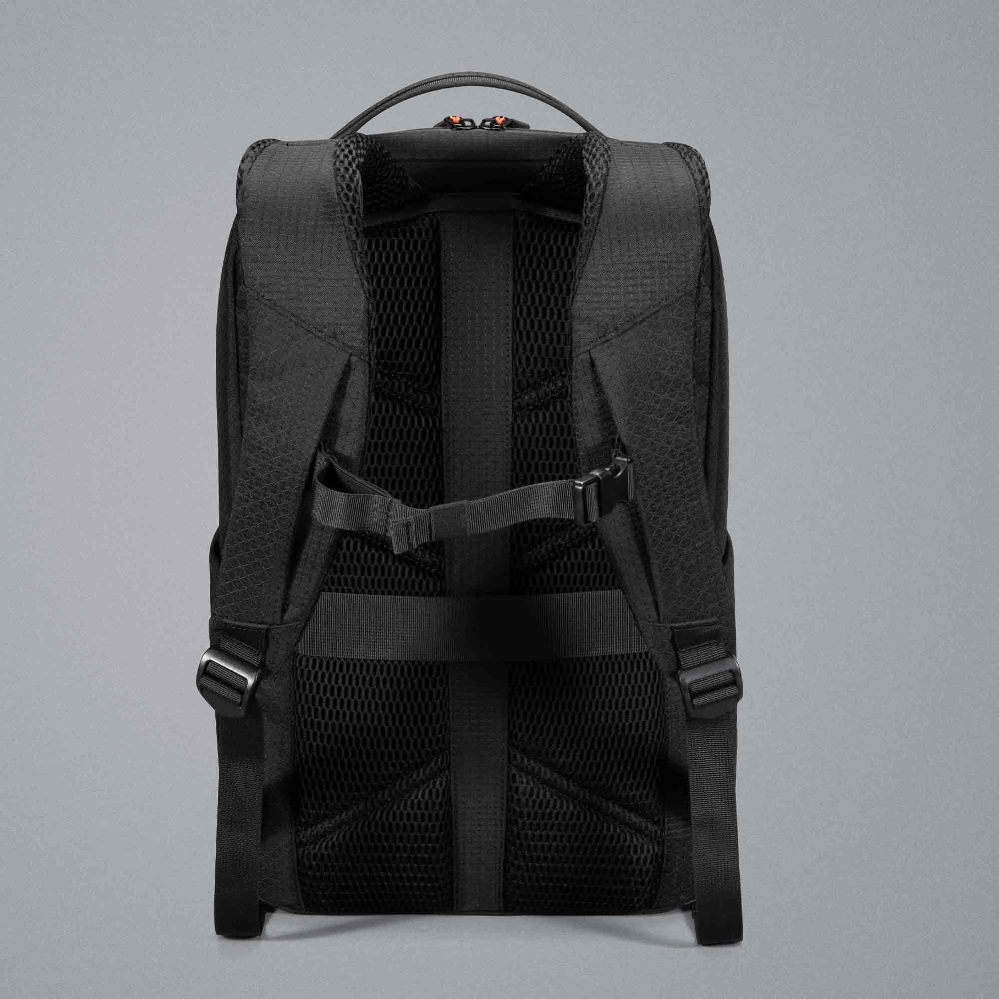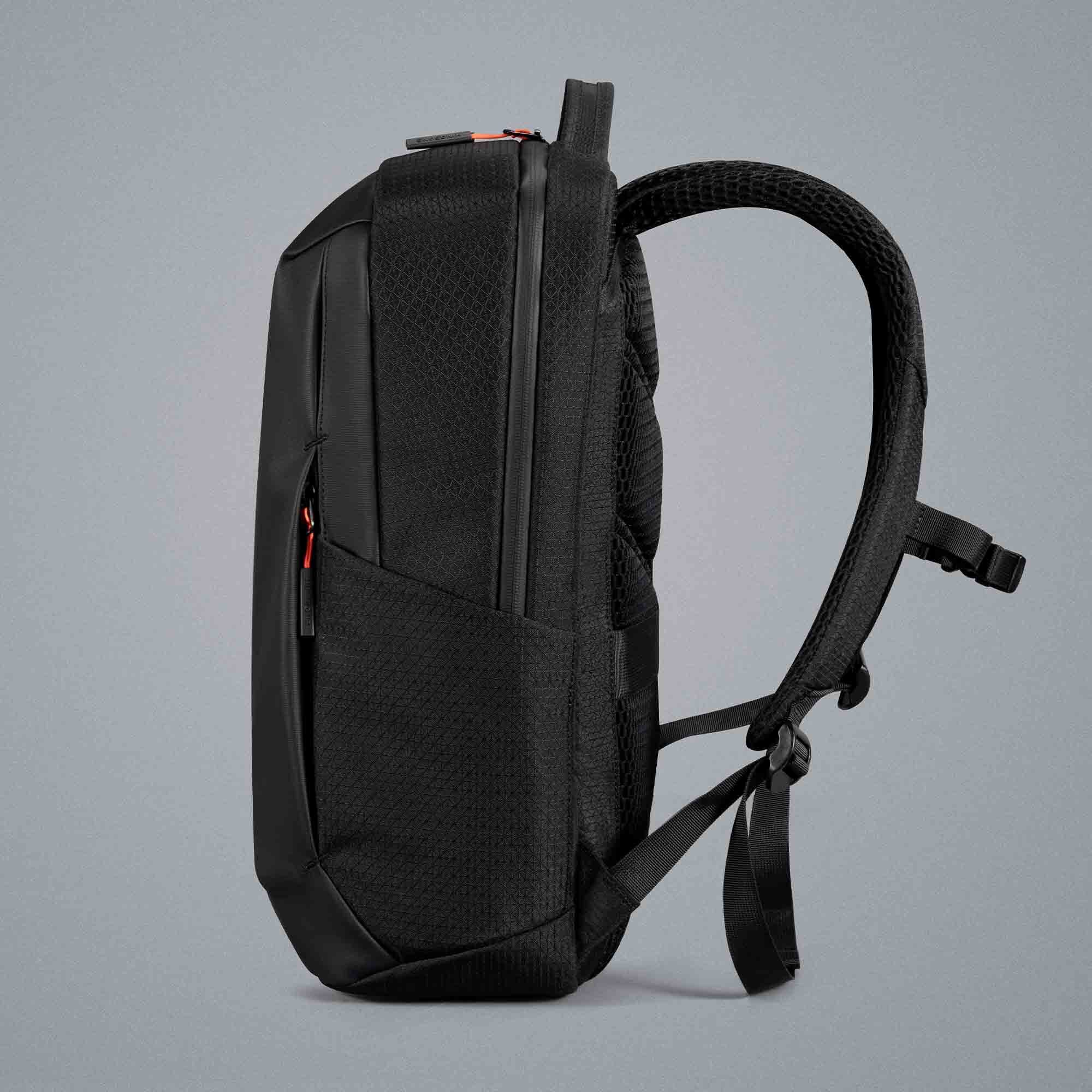 Стильный рюкзак с трёхмерным кроем и минималистичным дизайном, выполнен из прочной водоотталкивающей ткани 1800D с элементами из премиальной микрофибровой кожи. Оснащён отделением для ноутбука 15,6 диагонали, передним карманом для быстрого доступа и внутренними карманами для пауэрбанка, мыши, ручек и аксессуаров. Комфорт в использовании обеспечивают удобная кожаная ручка, усиленные плечевые лямки и надёжная фурнитура с брендированными пуллерами. Для путешествий предусмотрена троллейная лента. Материал устойчив к влаге и царапинам. Объем 17 л.