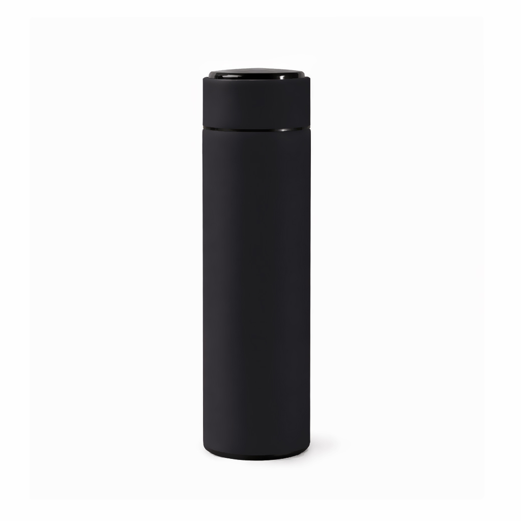 Термос из нержавеющей стали, покрытый цветным soft touch, с крышкой, в которой встроен термометр и LED дисплей, показывающий температуру внутри термоса. Объем: 500 мл. Упаковка: каждый термос в крафт коробке.