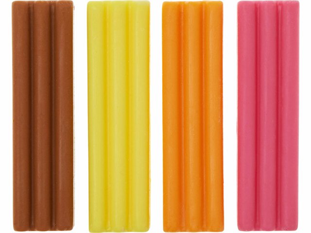 Пластиканын эстелигин эске салган формадагы жаркыраган жана адаттан тыш конфеттер майрамдык маанайды жаратып, көзгө жагымдуу. Сапаттуу ингредиенттерден жасалган. Ар бир топтомдо 4 жаркыраган даам бар: банан, кызгылт сары, малина жана туздалган карамель!