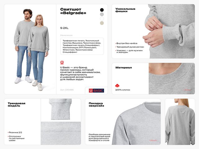 Благодаря крою рукава реглан свитшот сидит комфортно по фигуре. Материал —3х-ниточный футер из гребенного хлопка, долго носится и не требует сложного ухода. Брендируется наиболее популярными для текстиля методами. - рукав реглан - внутри без начеса - оверсайз — модный и актуальный силуэт - дополнительное место для нанесения - внутри спинки под горловиной