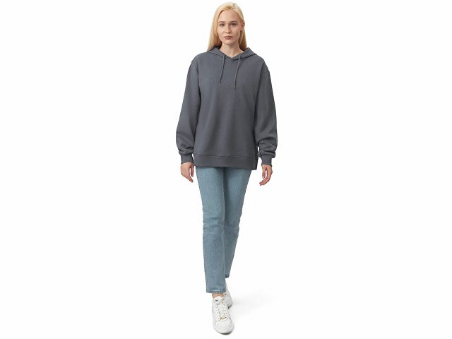 Толстовка с капюшоном из мягкого флиса из смеси хлопка и полиэстера. Модель комфортной и актуальной посадки оверсайз отлично подходит для обычной жизни и в качестве промо мерча. - оверсайз посадка - удобный капюшон на подкладке -мягкое и уютное полотно из смеси хлопка и полиэстеры - Низ и рукава обработаны манжетами из риба 2х2 и дополнительно отстрочены для укрепления - увеличенная зона для нанесения из-за отсутствия кармана