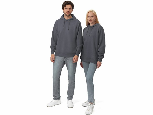 Толстовка с капюшоном из мягкого флиса из смеси хлопка и полиэстера. Модель комфортной и актуальной посадки оверсайз отлично подходит для обычной жизни и в качестве промо мерча. - оверсайз посадка - удобный капюшон на подкладке -мягкое и уютное полотно из смеси хлопка и полиэстеры - Низ и рукава обработаны манжетами из риба 2х2 и дополнительно отстрочены для укрепления - увеличенная зона для нанесения из-за отсутствия кармана