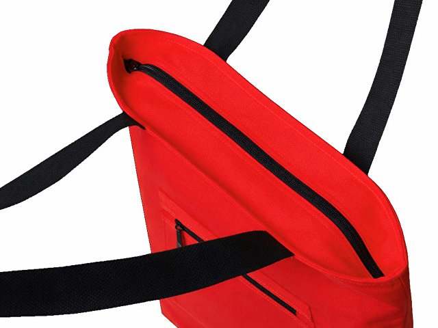 Преимущество этой сумки в наличии застежки молнии на основном отделении - ее содержимое остается закрытым. Донная складка увеличивает вместимость. Снаружи расположен карман на молнии. Парусиновые ручки в тон сумки.