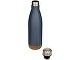 Бутылка для воды из нержавеющей стали с вакуумной изоляцией и пробковыми деталями в нижней части. Двойная изоляция стенок сохраняет напитки горячими или холодными в течение нескольких часов. Поставляется в подарочной коробке из переработанного картона. Объем: 500 мл. 90% нержавеющая сталь, 10% Пробка. упаковка FSC Mix Credit P5.1 CU-COC-877277.