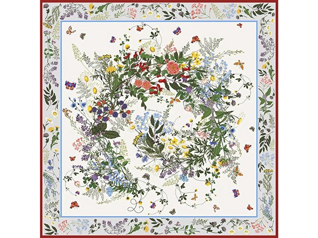 Набор состоит из платка «Русский полевой букет» от бренда «Русские в моде» и ароматической свечи «Ароматные травы» от «AROMATERIA».
