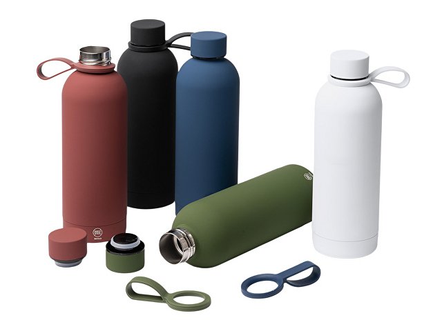 Термобутылка из переработанной нержавеющей стали 304. Мягкая прорезиненная поверхность на корпусе. Удобная силиконовая ручка для переноски. Оснащена противокапельной системой благодаря силиконовому кольцу, встроенному во внутреннюю часть крышки. Крышка и ручка соответствуют цвету корпуса. Объем: 500 мл. - Переработанная нержавеющая сталь 304 - Защита от капель - Нельзя мыть в посудомоечной машине - Поставляется в эко коробке