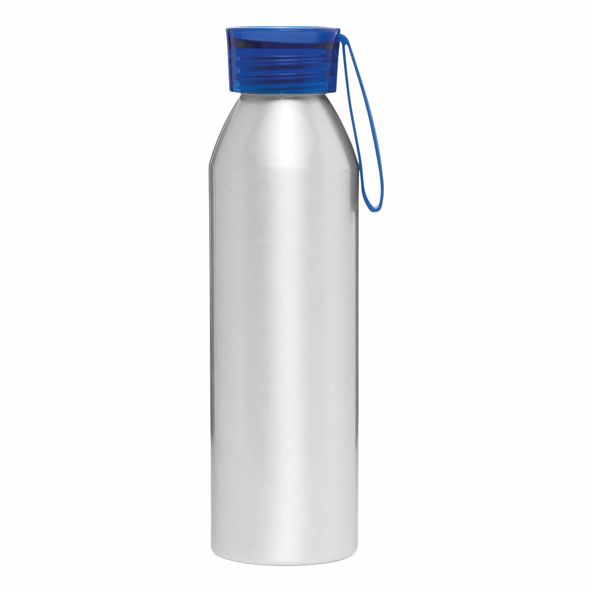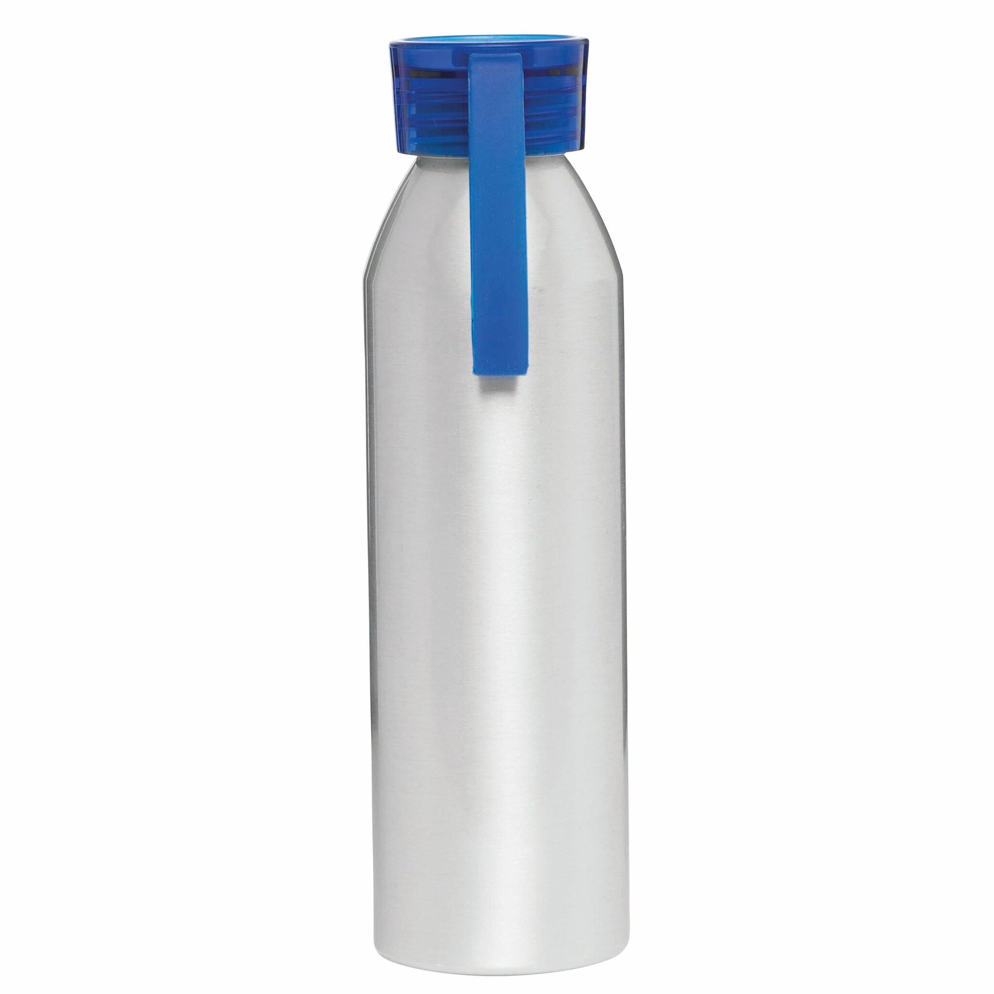 Алюминиевая бутылка COLOURED: цветная закручивающаяся пластиковая крышка, силиконовая петля на руку, объем: около 650 мл.