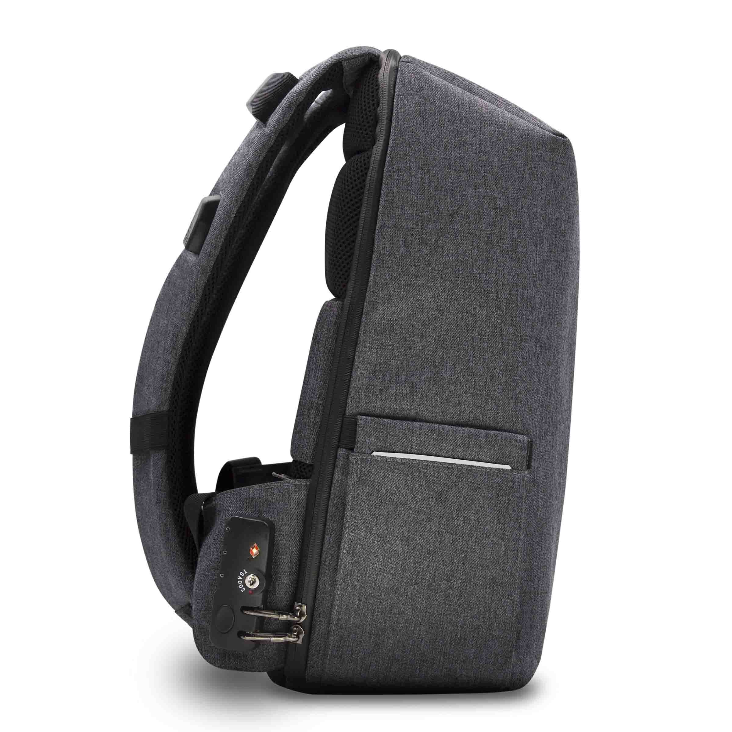 Рюкзак кайра иштетилген 15 ♻PET бөтөлкөдөн (ар бири 500 мл) жасалган. Камтылган TSA кулпусу, жашыруун паспорт отсеги жана рюкзакты каалаган буюмга тагууга мүмкүндүк берүүчү боо менен жабдылган. Анын заряддоочу түзүлүштөр үчүн USB порту, ноутбук отсеги, карталар үчүн ыңгайлуу чөнтөк, суу өткөрбөй турган сыдырма, тартылуучу каптал чөнтөктөрү, вентиляциясы бар жумшак бели, анатомиялык кайыштары жана чемоданга бекиткичтери, караңгыда коопсуздук үчүн чагылдыруучу элементтери бар суудан жана кирден коргоочу каптама бар. Богонун ичине бөтөлкө ачкыч орнотулган. Металл теги: эпоксиддик каптоо, ПУ булгаары теги.