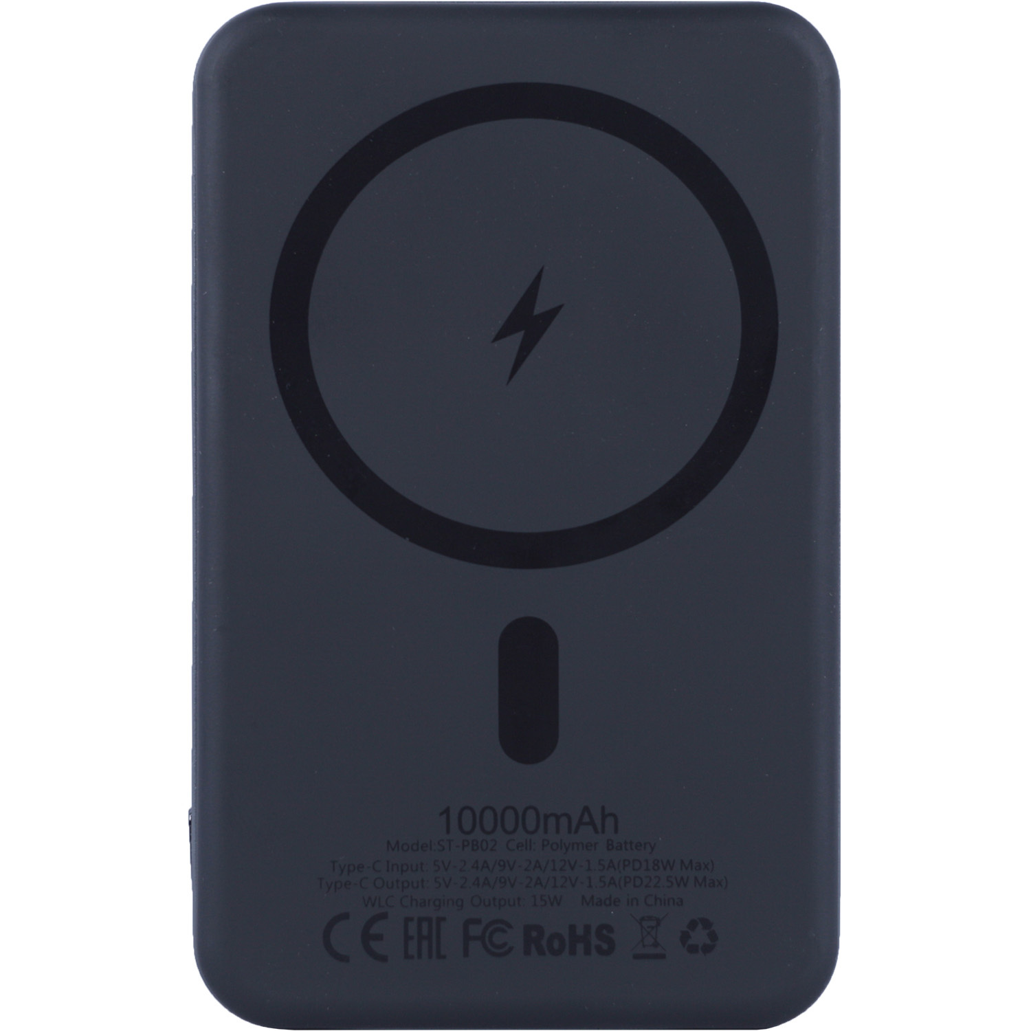 Кубаттуулугу: 10000mAh; Tupe C киргизүү: 5V=2A/ 9V=2A; C түрү чыгаруу: 5V = 2.4A, 9V = 2.22A, 12V / 1.67A, 20W (Макс). Зымсыз кубаттоо: 15W, 10W, 7.5W, 5W. Өлчөмү: 106x66x139 мм. Материал: алюминий, ABS. Жеке таңгактын өлчөмү: 117x95x23 мм.