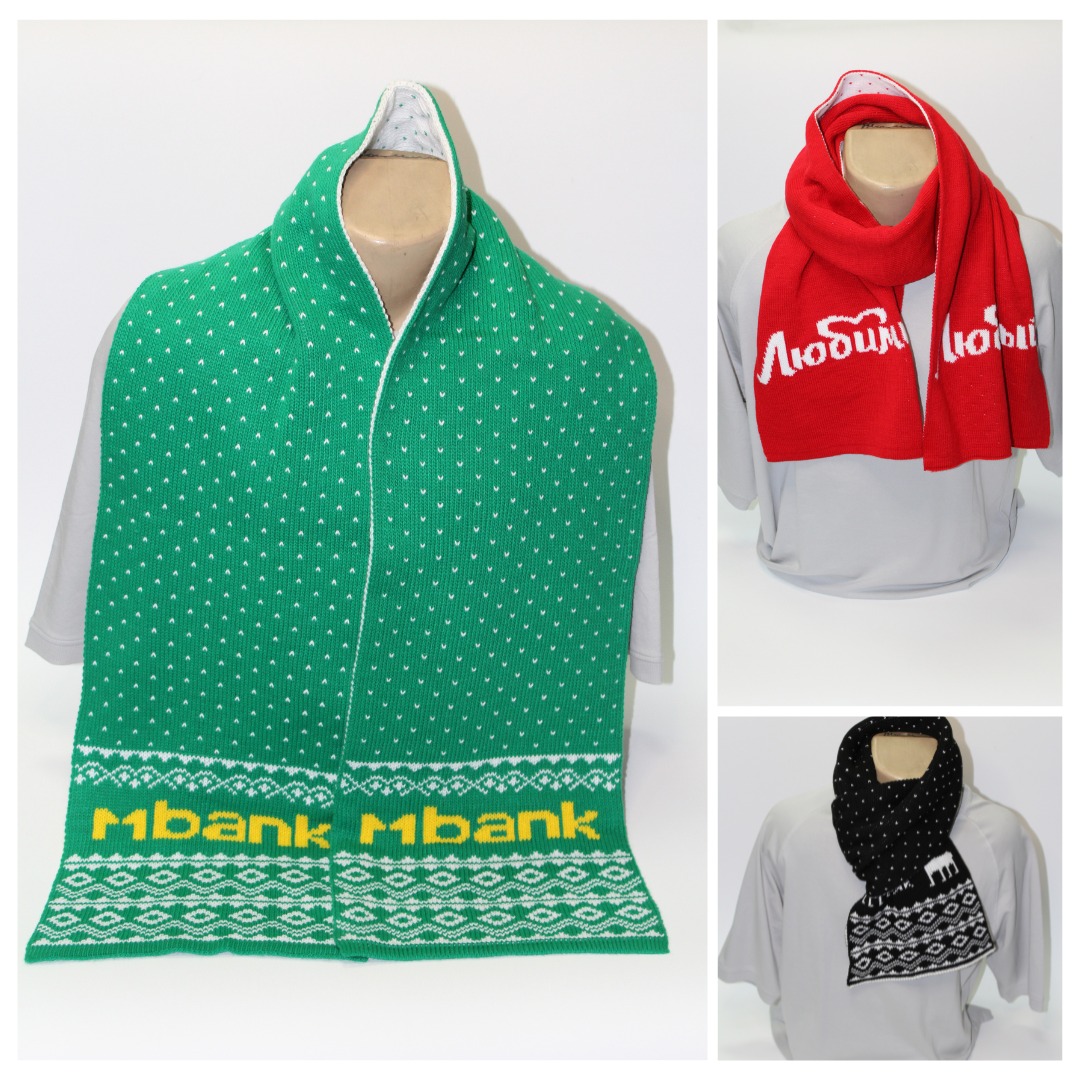 Жумшак акрил джерси менен токулган токулган шарф. Компанияңыздын логотиби же дизайн менен. Биз жеке буйруктарды 100гө чейин аткарабыз.