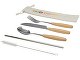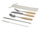 Тамырдын тамырлары орнотулган, ал ыңгайлуулукту жана экологиялык достук мамилени баалаган адамдар үчүн саркеч жана практикалык чечим. Топтомго айрылар, бычак, кашык, сыноо саман жана аны тазалоо үчүн щетка кирет. Жумушчу бөлүгү бышык дат баспас болоттон жасалган, жана бук жыгач туткалары түзмөктөрдү колдонууга ыңгайлуу жана ыңгайлуулук беришет. Мунун баары тыкан пахта баштыгына тыкан таңгакталган - сиз менен сейилдөөгө, сапарга же иштөөгө ыңгайлуу.