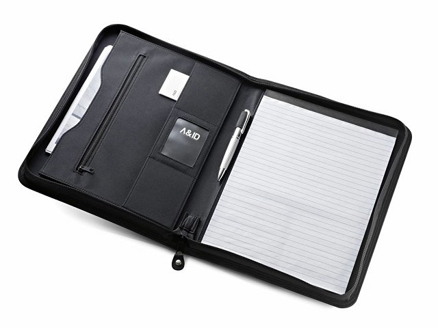 Папка формата А4 из искусственной кожи и микрофибры. Папка имеет несколько внутренних карманов, блокнот из 20 листов в линейку и держатель для шариковой ручки (ручка не входит в комплект). Доступна пластинка для персонализации. 245 x 325 x 40 мм | Пластина: 16 x 45 мм. Вид нанесения, рекомендуемый поставщиком: гравировка, трансфер.