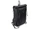 Легкий, элегантный, складывающийся рюкзак вместителен и удобен благодаря системе закрытия основного отделения roll-top, наличию трех наружных карманов спереди и по бокам из прочной эластичной сетки и внутреннему плотному карману для ноутбука до 16". Лямки с эластичными карманами для карт, телефона и других мелочей фиксируются на груди пряжкой, которую можно отрегулировать по высоте под ваш рост. Эластичные фиксирующие шнурки имеют светоотражающее нанесение, что обеспечивает дополнительную защиту в темное время суток. Дышащая сетка на спинке обеспечивает удобство и комфорт. На нагрудной пряжке предусмотрен свисток для экстренного случая. Водостойкая ткань верха изготовлена из переработанного пластика, пропитана специальным составом против загрязнения. В комплекте металлический шильд для нанесения вашего логотипа.