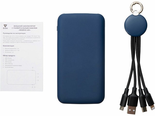 Комплектность: внешний аккумулятор, зарядный кабель 3-в-1, инструкция