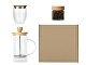 Материал товара: френч пресс - боросиликатное стекло, буковое дерево, нержавеющая сталь 304 марки, чай - банка -стекло, крышка- дерево, стакан - боросиликатное стекло, бамбук, нержавеющая сталь, коробка - картон