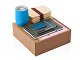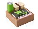Материал товара: картхолдер - силикон, термокружка - нержавеющая сталь, блокнот - термо PU с зернистой структурой, ручка - пластик с покрытием soft-touch, ланчбокс - 50% пшеничное волокно, 50% ПП-пластик, открытка - бумага, коробка - картон