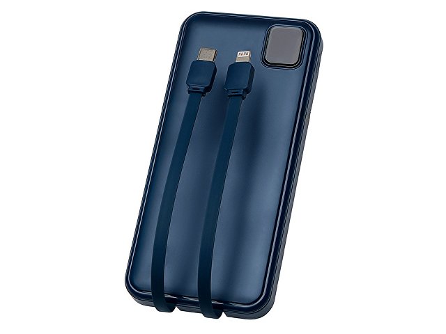 Удобный внешний аккумулятор с встроенными кабелями USB-C и Lightning — ваш надежный партнер в путешествиях, на встречах и в повседневных задачах. Цифровой дисплей в реальном времени показывает точный остаток заряда, а компактные габариты делают его таким же удобным, как смартфон. Прочный корпус из переработанного АБС-пластика и емкость 10000 мАч обеспечивают долгую работу даже при интенсивном использовании. Идеальный выбор для тех, кто ценит комфорт и функциональность в одном устройстве. Продуманная упаковка: для открытия просто потяните за язычок, и появится гаджет с нанесением. - Встроенные кабели USB-C и Lightning — больше не нужно искать провода - Цифровой дисплей с точным отображением заряда - Удобная зона под нанесение логотипа - Компактный размер, сопоставимый с телефоном — легко помещается в карман, сумку или портфель. - Упаковка с удобным и быстрым открытием