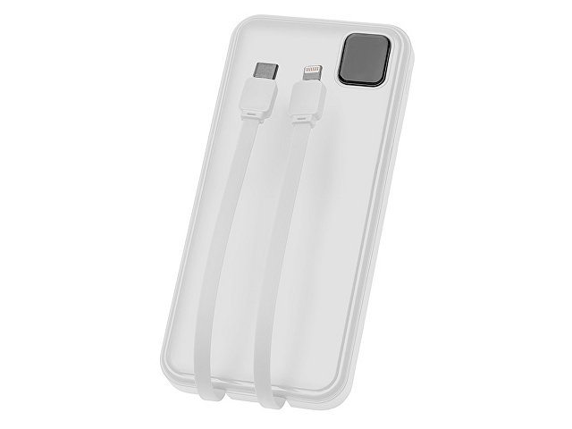 Удобный внешний аккумулятор с встроенными кабелями USB-C и Lightning — ваш надежный партнер в путешествиях, на встречах и в повседневных задачах. Цифровой дисплей в реальном времени показывает точный остаток заряда, а компактные габариты делают его таким же удобным, как смартфон. Прочный корпус из переработанного АБС-пластика и емкость 10000 мАч обеспечивают долгую работу даже при интенсивном использовании. Идеальный выбор для тех, кто ценит комфорт и функциональность в одном устройстве. Продуманная упаковка: для открытия просто потяните за язычок, и появится гаджет с нанесением. - Встроенные кабели USB-C и Lightning — больше не нужно искать провода - Цифровой дисплей с точным отображением заряда - Удобная зона под нанесение логотипа - Компактный размер, сопоставимый с телефоном — легко помещается в карман, сумку или портфель. - Упаковка с удобным и быстрым открытием