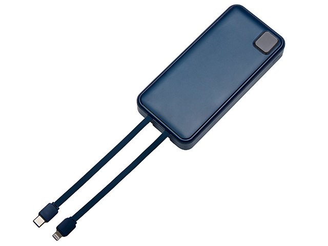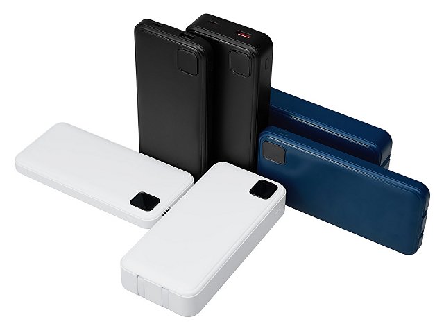 Удобный внешний аккумулятор с функцией быстрой зарядки и встроенными кабелями USB-C (симметричный разъём USB тип С) и Lightning (разъём в ранних версиях iPhone) — ваш надежный партнер в путешествиях, на встречах и в повседневных задачах. Цифровой дисплей в реальном времени показывает точный остаток заряда и статус быстрой зарядки, а встроенные кабели и несколько разъемов позволяют заряжать до 4 устройств. Прочный корпус из переработанного АБС-пластика и емкость 20000 мАч обеспечивают зарядом все ваши устройства на долгий срок. Идеальный выбор для тех, кто ценит комфорт и функциональность в одном устройстве. Продуманная упаковка: для открытия просто потяните за язычок, и появится гаджет с нанесением. - Встроенные кабели USB-C и Lightning — больше не нужно искать провода - Цифровой дисплей с точным отображением заряда - Удобная зона под нанесение логотипа - Функция быстрой зарядки, заряжает на 50% быстрее - Упаковка с удобным и быстрым открытием - До 4-5 полных зарядок смартфона