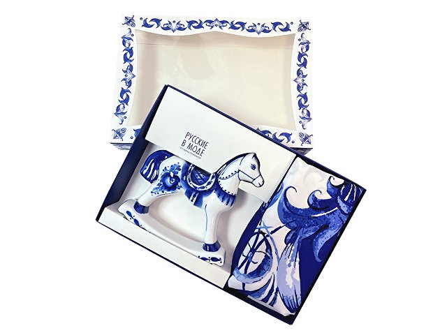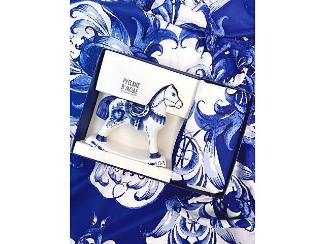 Гжель — популярный художественный промысел, символ России — яркая, самобытная и неповторимая. Платок «Гжель» от бренда «Русские в моде» выполнен в технике знаменитой кобальтовой росписи. Узоры в тонких оттенках синего цвета, размещенные на белом фоне, — один из самых распространенных рисунков гжель, чья форма столетиями доводилась мастерами до совершенства. На полотне восхитительные соцветия тугих бутонов и ажурных лепестков гармонично соседствуют с узнаваемыми сине-голубыми завитками, спиралями и линиями. Статуэтка «Лошадка-качалка» создана Объединением «Гжель» — всемирно известной фабрикой фарфора, который отличается качеством, долговечностью и красотой. Изысканное изделия «Лошадка-качалка» напомнит о волшебном мире детства, домашнем уюте и радости каждого дня. Фигурка выполнена из фарфора с ручной сине-белой росписью и воплощает неповторимое искусство гжели. Дуэт «Гжель» непременно принесет Вам исполнение всех заветных желаний и счастье!